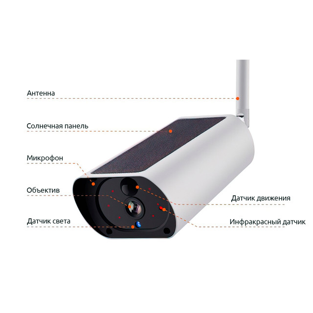 Solar Camera Y9 находится в спящем режиме и включается при обнаружении движения или активируется при входе в приложение для камеры. Благодаря данным режимам работы устройство может работать до 6 месяцев даже при пасмурной погоде. Девайс питается от 4-х аккумуляторов 18650, которые заряжаются от солнечной панели. В комплектацию входит выносная солнечная панель с кабелем длиной 3 метра.
