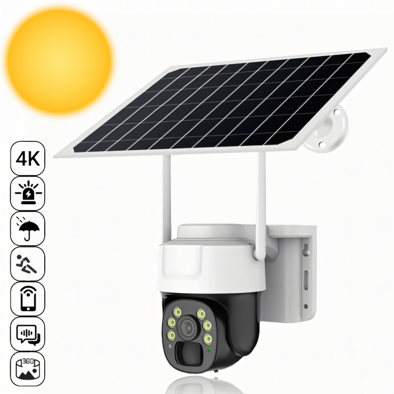 Абсолютно автономная камера уличного видеонаблюдения, работающая от солнечного света и подключающаяся к WiFi или 4G. Благодаря технологии PTZ (панорамирование, наклон, зум), вы можете наблюдать за происходящим вокруг камеры на 360° из любого места. Высокое разрешение съемки позволяет четко рассматривать лица и мелкие детали. Режим "день/ночь" обеспечивает высококачественное изображение в любое время суток, а ИК-светодиоды с радиусом действия до 20 м работают даже в полной темноте. Встроенный микрофон позволяет воспроизводить голос через мобильное устройство, компьютер или ноутбук, независимо от вашего местоположения. Прочный корпус камеры защищает устройство от механических повреждений и других воздействий. Камерой можно удаленно управлять, поворачивая её вертикально и горизонтально.