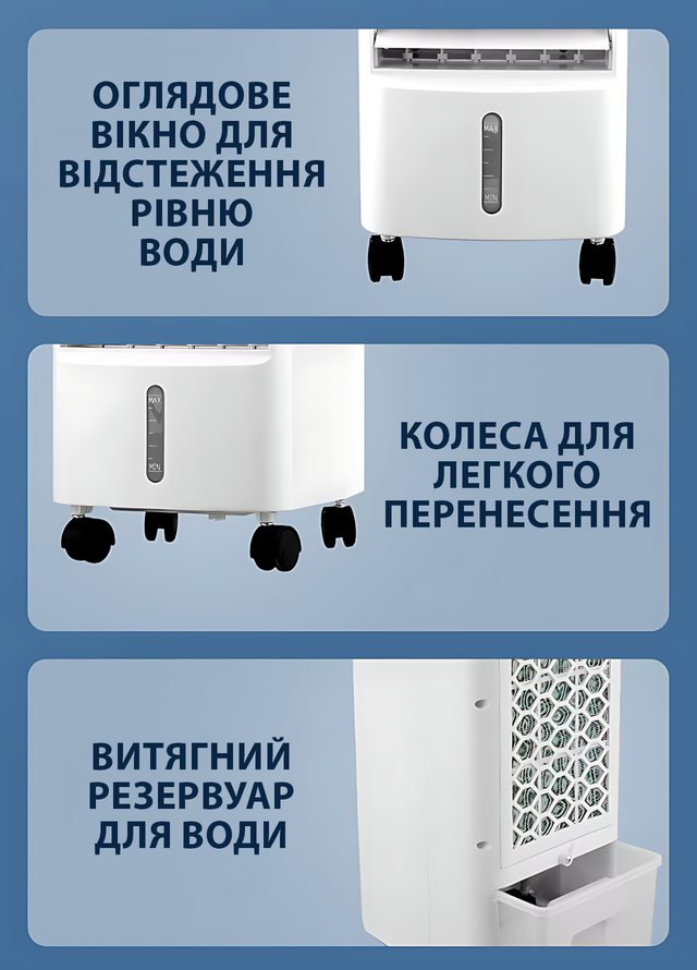 - Функции: Охлаждение, увлажнение, вентиляция, очистка воздуха;