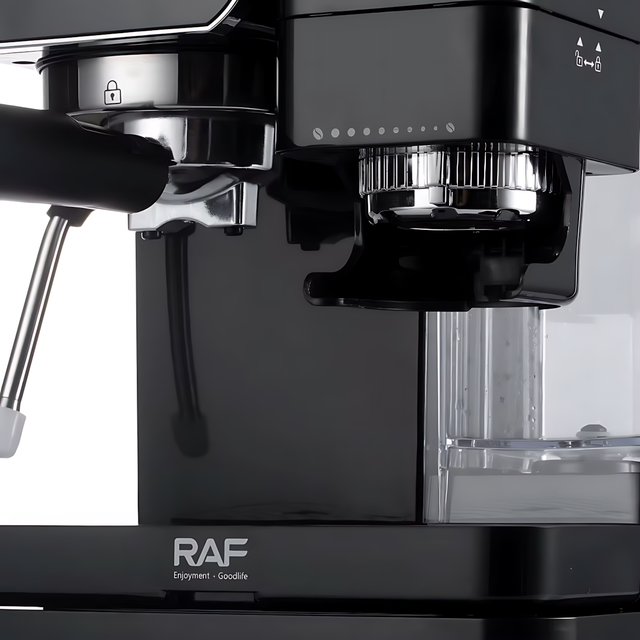 Кофемашина RAF R-0204, 1350 Вт, полуавтоматическая, с кофемолкой, капучинатором, 15 барр, 1.5 л