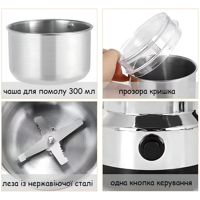 ⚡ Быстрый и равномерный помол благодаря лезвиям из нержавеющей стали
