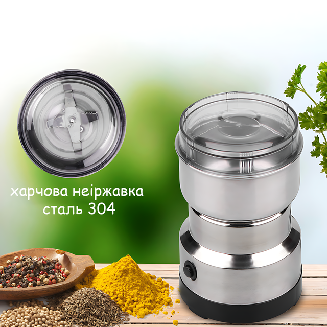 Кофемолка электрическая Domotec MS-7113, 180 Вт, 85 г, нержавеющая сталь, компактная, для кофе, орехов и специй, кнопочное управление