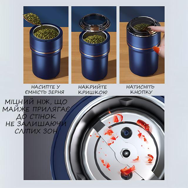 - Универсальность: Подходит для измельчения различных продуктов, включая фасоль, орехи и специи, что экономит время и усилия.