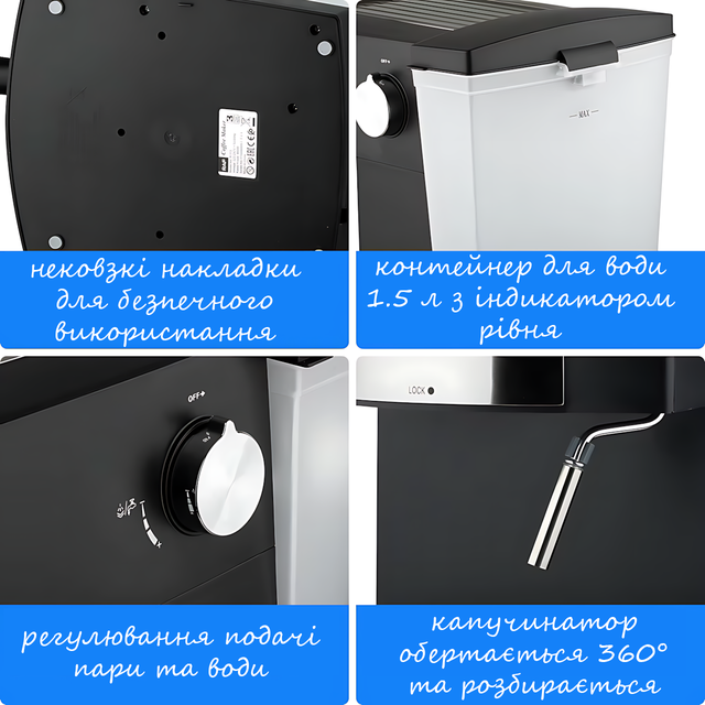 - 🥛 Встроенный вспениватель молока для капучино и латте.