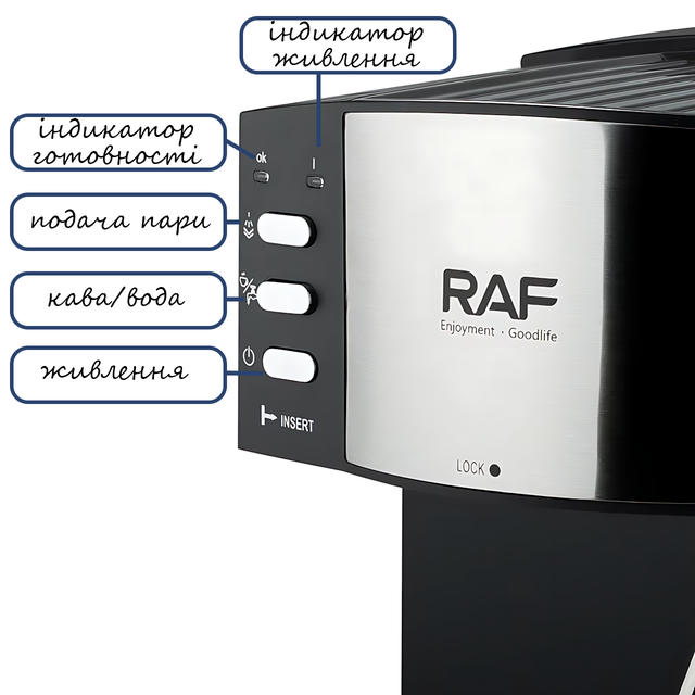 Кофеварка капельная-эспрессо RAF R.113 (1.5 л, 850 Вт, 20 бар) с функцией вспенивания молока и полуавтоматическим управлением