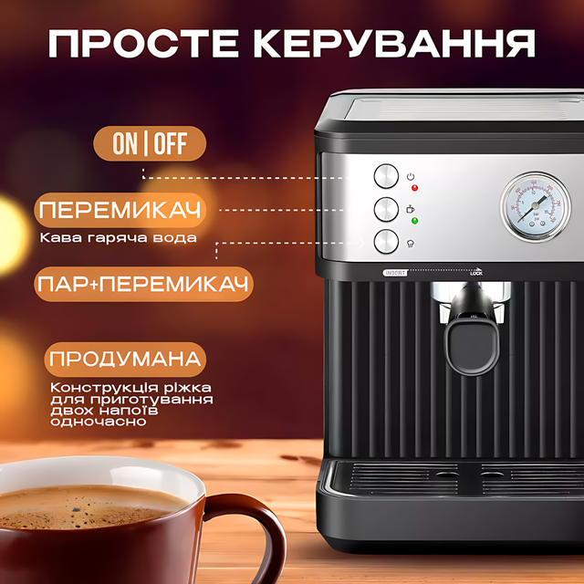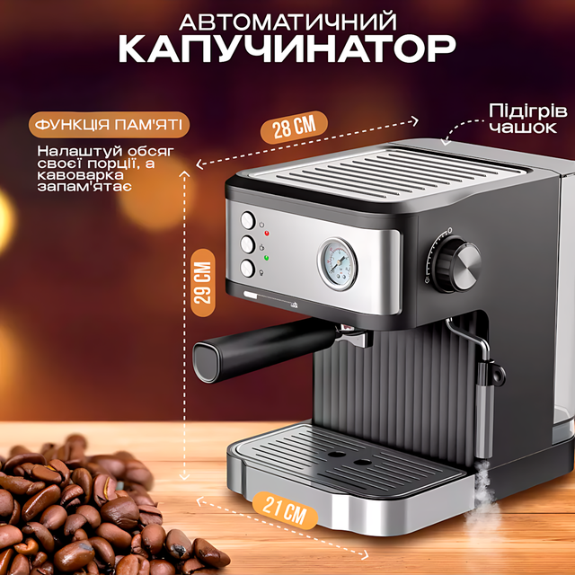- ✔ 15 Бар давления – идеальная экстракция для насыщенного вкуса и ароматной пенки.