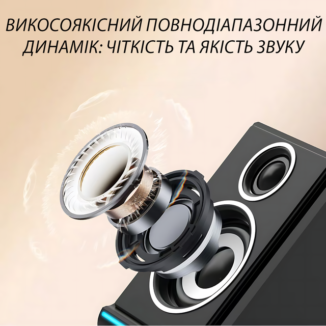- 🔊 Чистый стереозвук 2.0 без хрипов на рабочей громкости