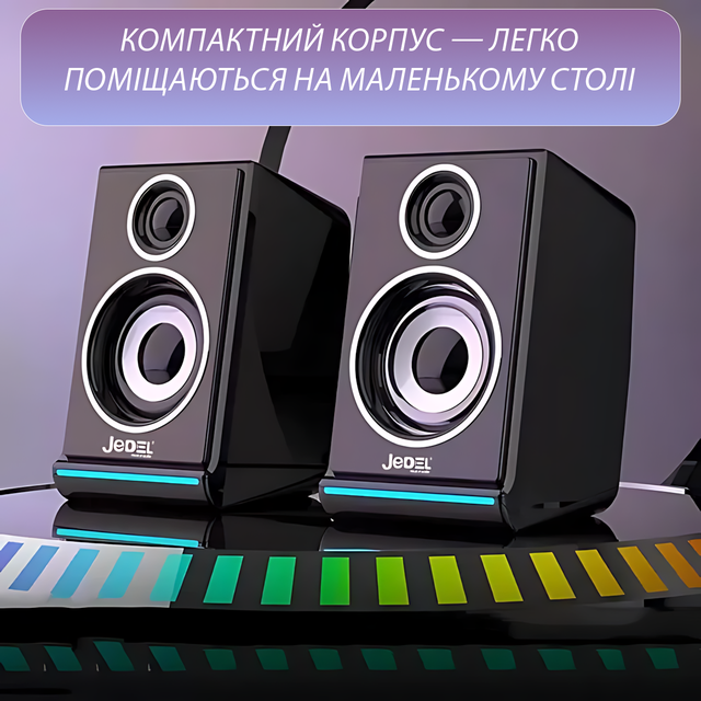 Колонки для ПК 2.0 USB JEDEL S-578 RGB (2×3 Вт) — компактная акустика с подсветкой, AUX 3.5 мм, для компьютера и ноутбука