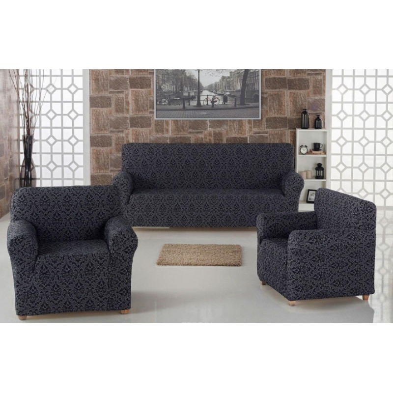Комплект чехлов на диван и два кресла Жаккард Milano Home Concept Karna, универсальный размер Графит
