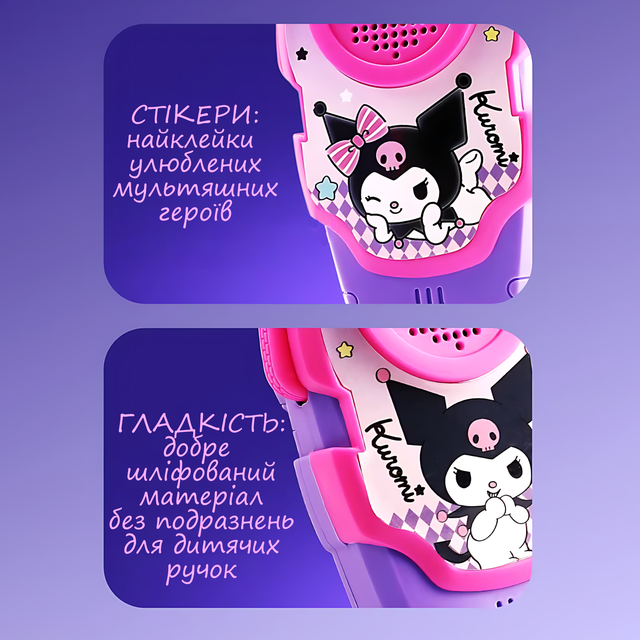 Детский набор из 2 игрушечных раций Kawaii Sanrio – это увлекательный аксессуар для игр на свежем воздухе и дома. Яркий и милый дизайн понравится каждому ребёнку, превращая обычные игры в захватывающие приключения. Рации сделаны из безопасного для детей Abs-пластика, прочного и долговечного, что гарантирует их надёжность даже при активной игре.