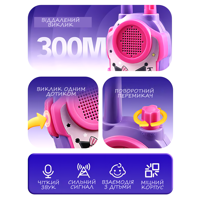 - Широкий радиус действия :Обеспечивает стабильную связь на расстоянии до 300 метров, идеально подходя для активных игр на улице.