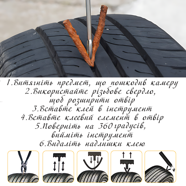 Этот комплект станет незаменимым инструментом для экстренного ремонта шин в самых непредвиденных ситуациях: будь то прокол на трассе вдали от шиномонтажа, отсутствие запасного колеса или невозможность посетить СТО. В наборе предусмотрено всё необходимое для оперативного восстановления герметичности бескамерных шин, включая винтовой инструмент, игольчатый инструмент, клей-активатор и три прочных жгута из сырой резины.