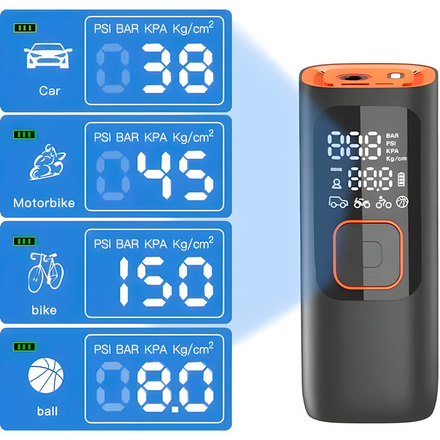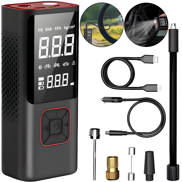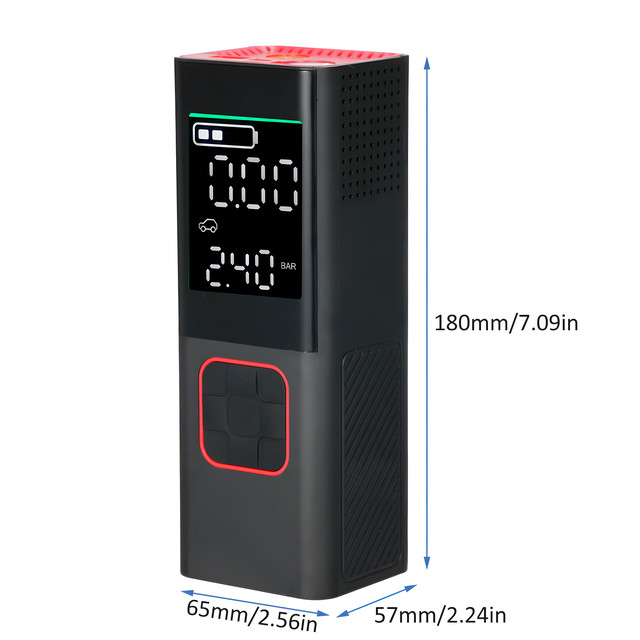 - Портативность и универсальность: Благодаря встроенному аккумулятору, этот электро компрессор можно использовать в любом месте без доступа к электросети, что делает его идеальным для путешествий и экстренных ситуаций.