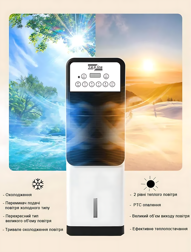 Утром ты мёрзнешь? — он уже греет. Днём в жару — приятно охлаждает. А ночью — заботливо увлажняет воздух. Всё это с сенсорной панелью на украинском языке. И удобным пультом управления. Чтобы ты управлял комфортом, не вставая с дивана.