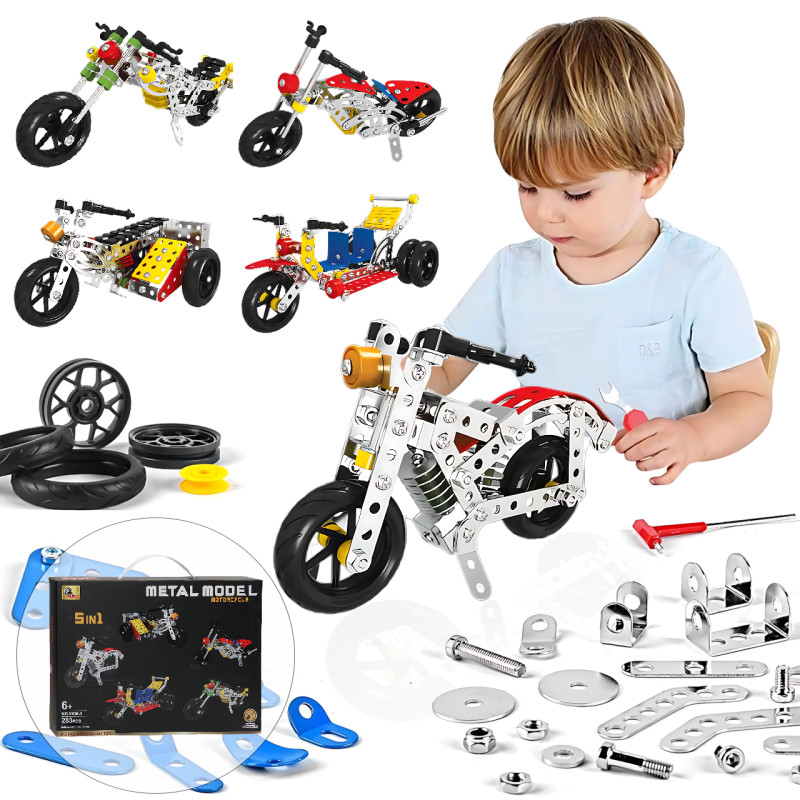 Конструктор X638-1 в виде металлического мотоцикла, металлический конструктор 5 в 1 из 283 деталей