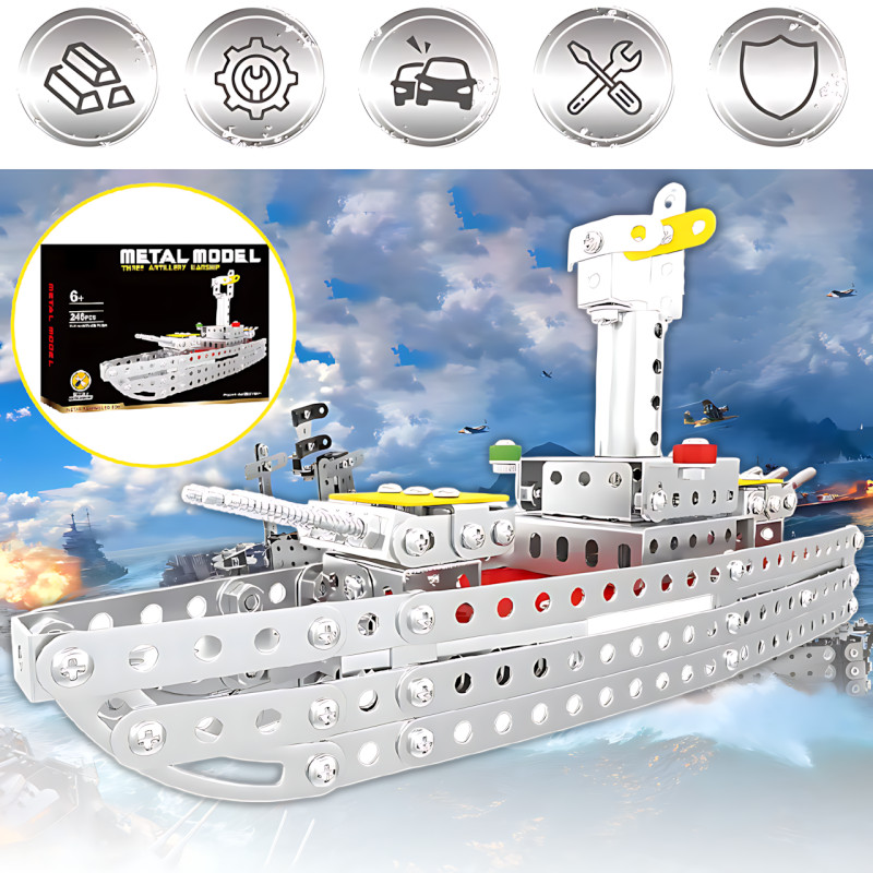 Детский металлический конструктор "Военный корабль" X688-1 – это интересный набор для юных инженеров и любителей военной тематики. С помощью 246 металлических деталей ребенок сможет самостоятельно собрать реалистичную модель военного корабля.