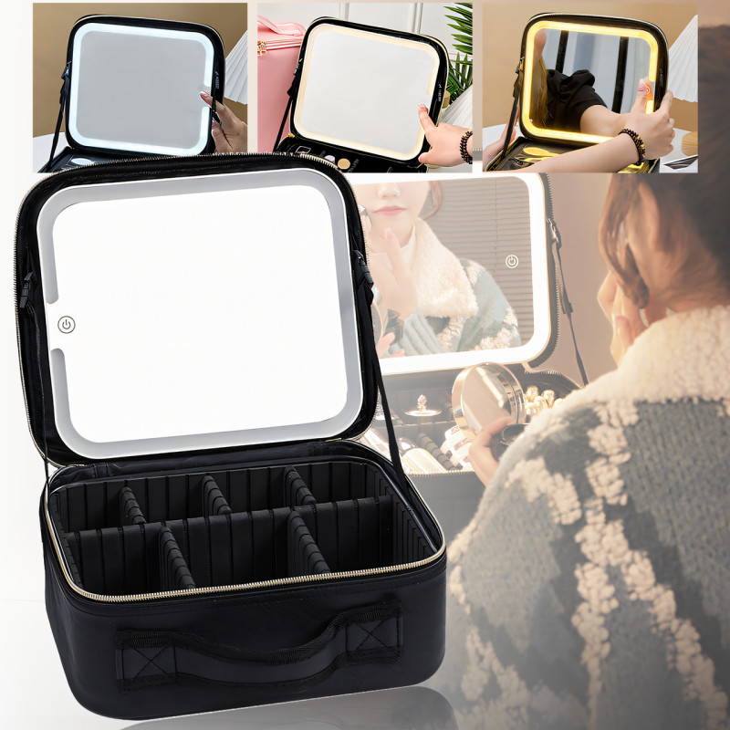 Портативная женская косметичка с зеркалом и светодиодной лампой – идеальное решение для макияжа в дороге или командировке.