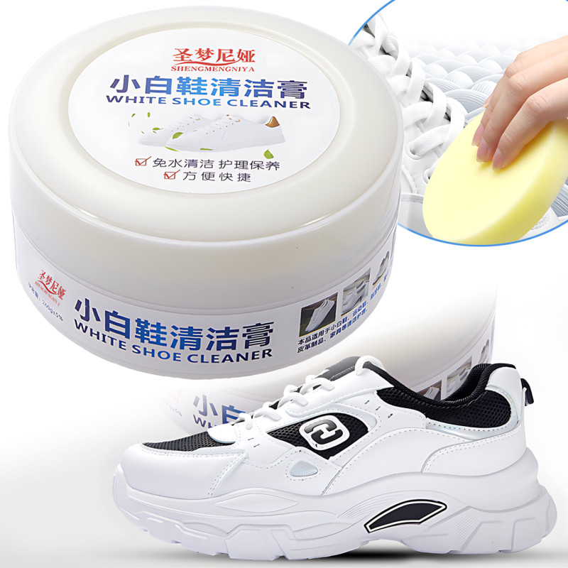 Крем-паста для чистки и отбеливания белой обуви и сумок Cleaning cream AND-170, для кожи, экокожи и подошвы, 150 г, быстрая очистка без воды, цветочный аромат