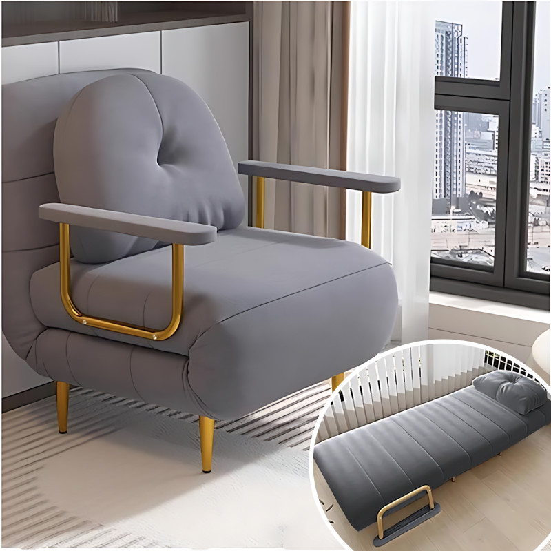 Кресло-кровать раскладное 3-в-1 DR-65, софа, шезлонг с металлическим каркасом, тканью антикоготь, подушкой, подлокотниками, серый