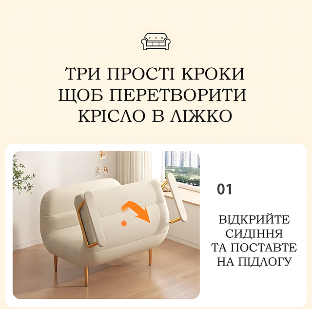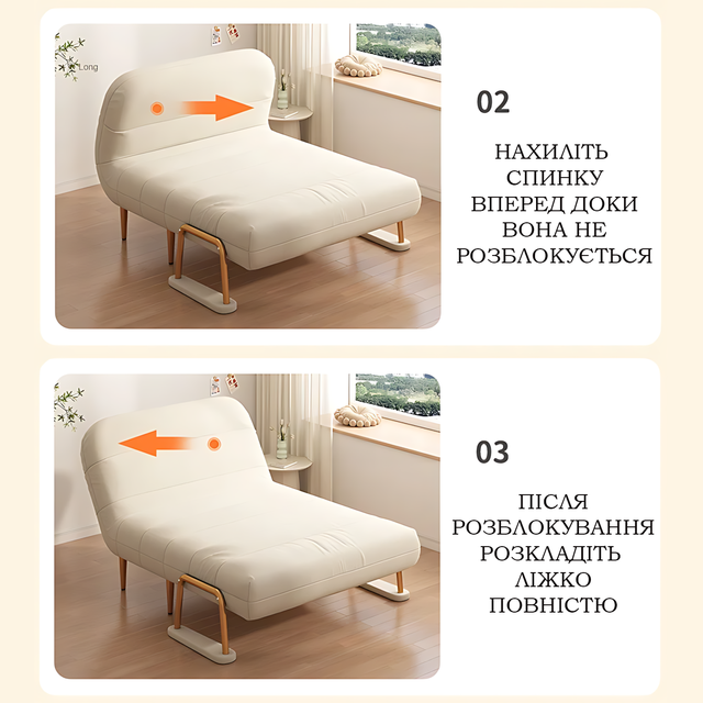 - 3-в-1: кресло → лежак → кровать за несколько секунд.
