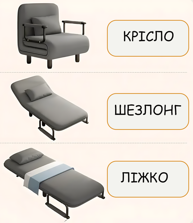 - ✅ 2 в 1: кресло и кровать в одном изделии — экономит место и деньги.