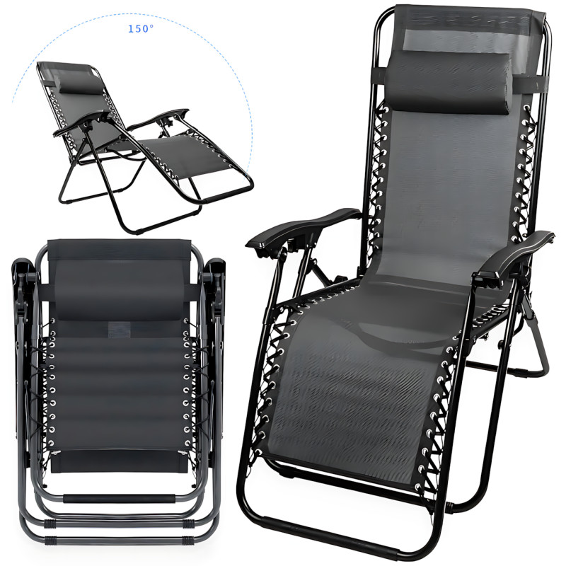 Кресло шезлонг раскладное Zero Gravity до 120 кг, складной стул для отдыха 2в1, с подголовником, угол 150°