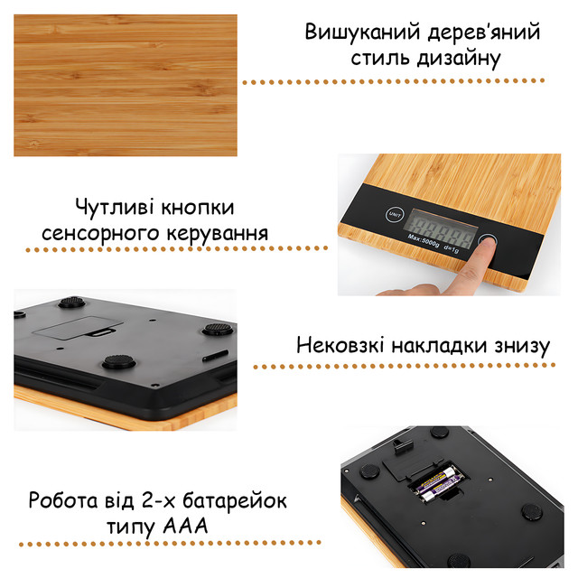 - 🔹 Высокая точность измерений — шаг 0.1 г, максимальный вес 5 кг.