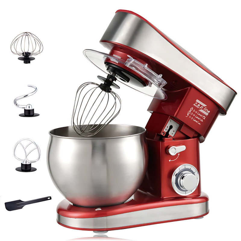 Кухонный миксер Zepline ZP-137, 4 в 1, мощность 3500 Вт, чаша 7 л, 6 скоростей, красный