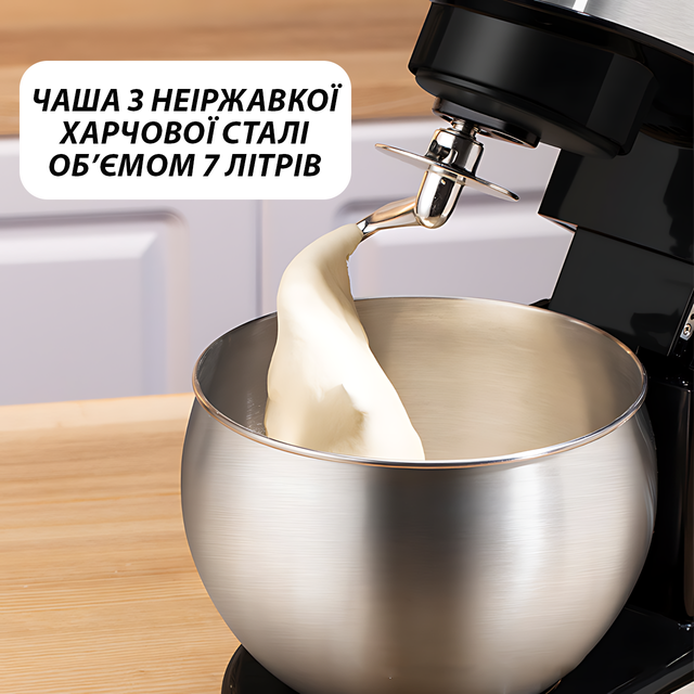 - 7-литровая чаша – идеально для замешивания теста или приготовления больших порций смеси.