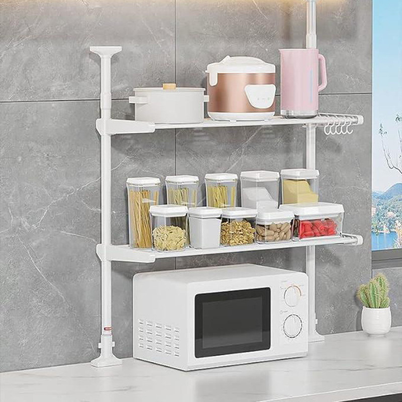 Кухонный органайзер над микроволновкой, регулируемая телескопическая полка для кухни, 110х51х26см, белая