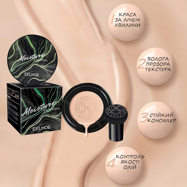 Кушон Mushroom Head Beauty Cream – это универсальный bb крем-пудра, подходящий для всех типов кожи. Продукт обеспечивает легкое и равномерное нанесение благодаря грибовидной пуховке, которая становится мягче при увлажнении. Эластичная бионическая пленка равномерно выдавливает крем, помогая скрыть недостатки и улучшить цвет лица. Натуральная формула включает экстракты центеллы азиатской и тремеллы, что питает и увлажняет кожу. Кушон эффективно регулирует кожное сало, уменьшая акне и раздражение. Продукт создает естественный макияж, не закупоривая поры, и позволяет коже дышать. Три оттенка крема подходят для разных тонов кожи: светлый, средний и тёмный. Увлажняющие компоненты борются с признаками старения и сохраняют свежесть на весь день. Легкий и компактный дизайн делает его удобным для повседневного использования. Кушон поставляется в заводской упаковке, что гарантирует его качество и безопасность.