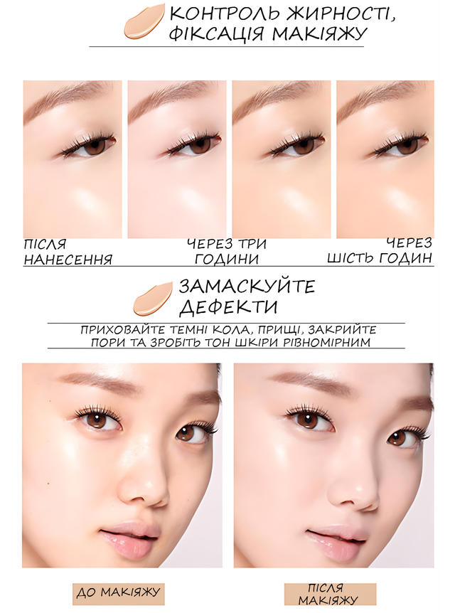- Естественный эффект: Скрывается, покраснеет и синяки под глазами, не появляются поры и шелушения, придавая коже сияющий и здоровый вид;