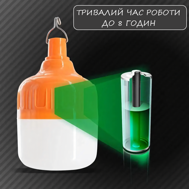 - Долгое время работы: При полном заряде лампа может работать до 7 часов без перерыва, обеспечивая длительное освещение.