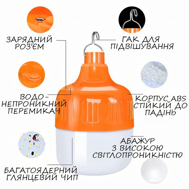 - Крючок для подвешивания: Удобный металлический крюк позволяет легко подвесить лампу в любом месте — на ветке дерева, в палатке, автомобиле, гараже или сарае;
