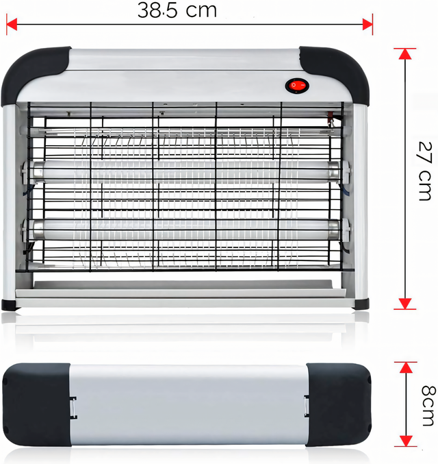 - Энергоэффективность: С потреблением всего 20 Вт (2 х 10 Вт ультрафиолетовых флуоресцентных ламп), эта лампа против насекомых потребляет меньше энергии, что экономит электроэнергию;