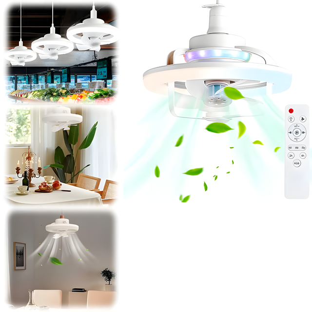 Лампа-вентилятор для патрона E27 с RGB подсветкой и пультом CHP-008 Светодиодный потолочный вентилятор