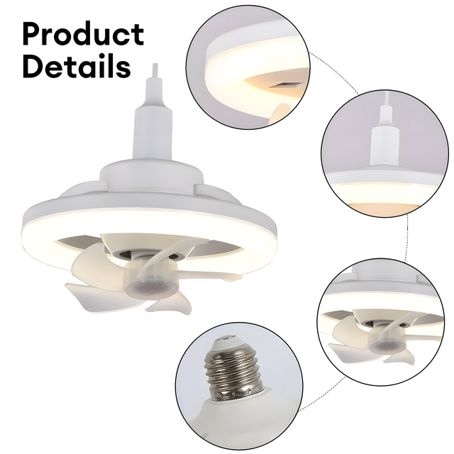 - Универсальный дизайн: Лампа-вентилятор адаптируется к различным условиям окружающей среды и может быть установлена на потолке, торшере, подвесном светильнике или настольной лампе, идеально вписываясь в любое пространство;