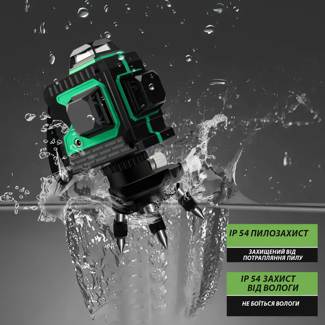 - Комплектация: В комплект входит всё необходимое для работы: лазерный уровень, батарея 4000 mAh, адаптер для работы от сети, верхний настенный кронштейн, подставка с точной регулировкой, пульт дистанционного управления, очки, кейс.