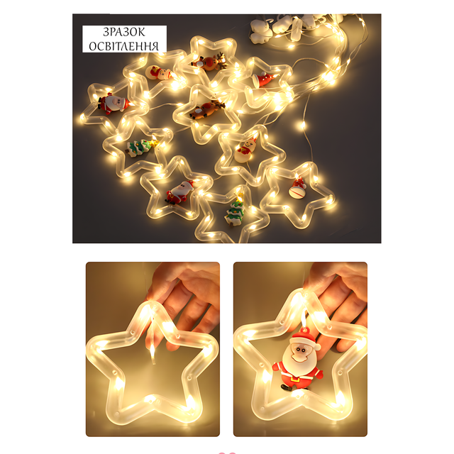 Гирлянда LED-штора SFK-24 со звездами и игрушками, теплый свет, 3 x 0,8 м, 8 режимов
