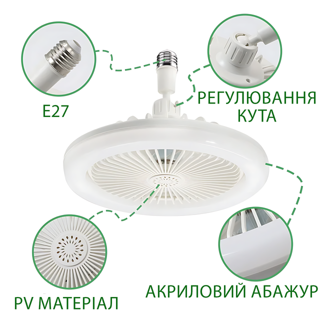 Люстра-вентилятор светодиодная AND 1018, 30 Вт, 3 скорости, цоколь Е27, 4000K, потолочная, белая, 26×12 см