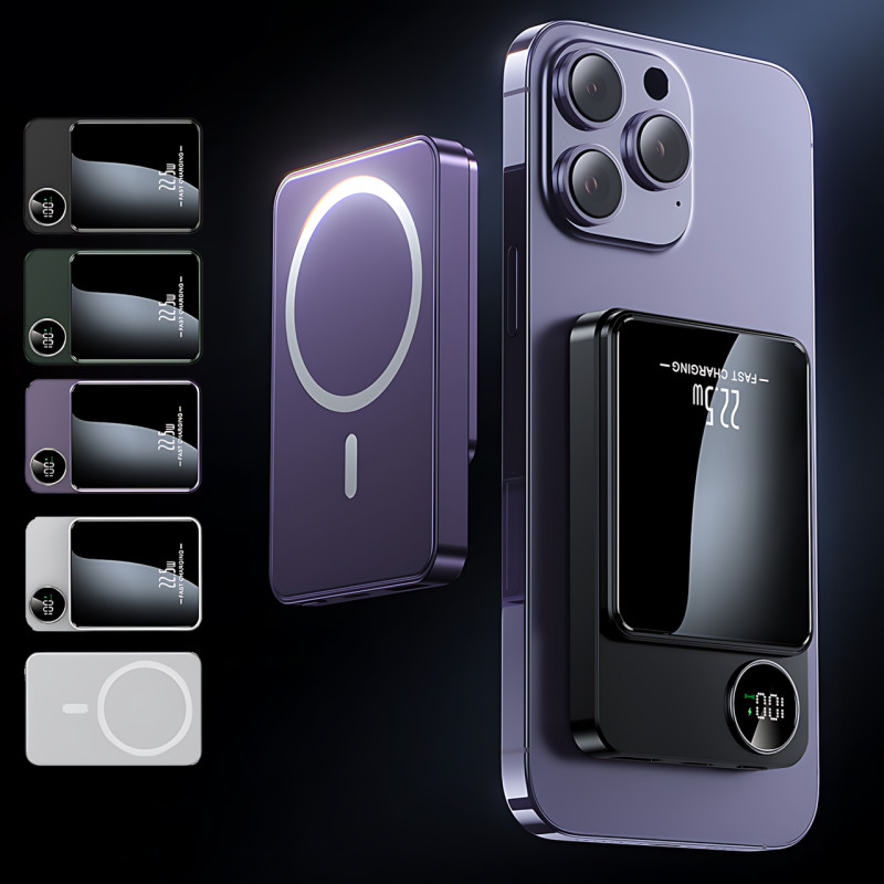 Магнитная беспроводная зарядка, PowerBank Q9 10000mAh с технологией MagSafe, дисплей с индикацией заряда