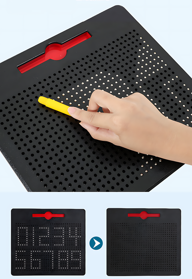 Забудьте про обыденные карандаши и бумагу – с MagPad вы можете создавать произведения искусства прямо магнитами! Это не просто планшет, а уникальная платформа для творчества, где стилус превращается в волшебный инструмент, а 714 магнитных шариков – в яркие точки вашего шедевра.