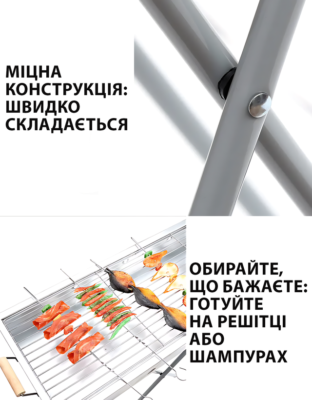 Если любите выбираться на природу, устраивать душевные пикники с ароматным шашлычком и овощами на гриле — этот мангал точно ваша тема! Надёжный, компактный и невероятно удобный. Он легко станет вашей любимой частью уикендов и летнего отдыха.