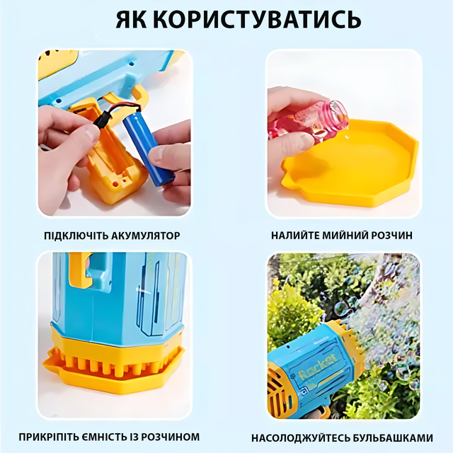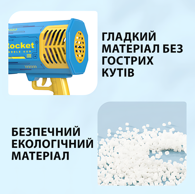 Rocket MA517 — это суперсовременная мыльнопузырчатая базука с 69 отверстиями, которая выдувает тысячи пузырей в минуту! И не просто пузырей — а с разноцветной LED-подсветкой, превращая любое пространство в мини-дискотеку. Особенно круто выглядит вечером — аууу, закаты, держитесь!