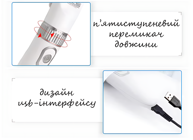 - Регулировка длины среза: 0,8 мм / 1,1 мм / 1,4 мм / 1,7 мм / 2,0 мм;