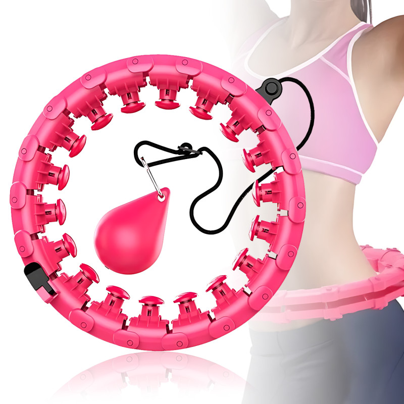 Массажный хулахуп SMALL box Hula Hoop для талии и пресса — разборный, регулируемый, с утяжелителем 240 г, 24 секции, 4 подшипника, розовый