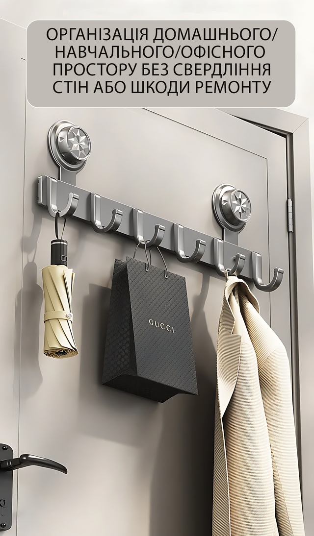 Шесть двойных крючков — настоящая находка: на один повесил полотенце, на второй — фен, ключи, косметичку, сумку или даже поводок для собаки. Наконец-то всё на своих местах!