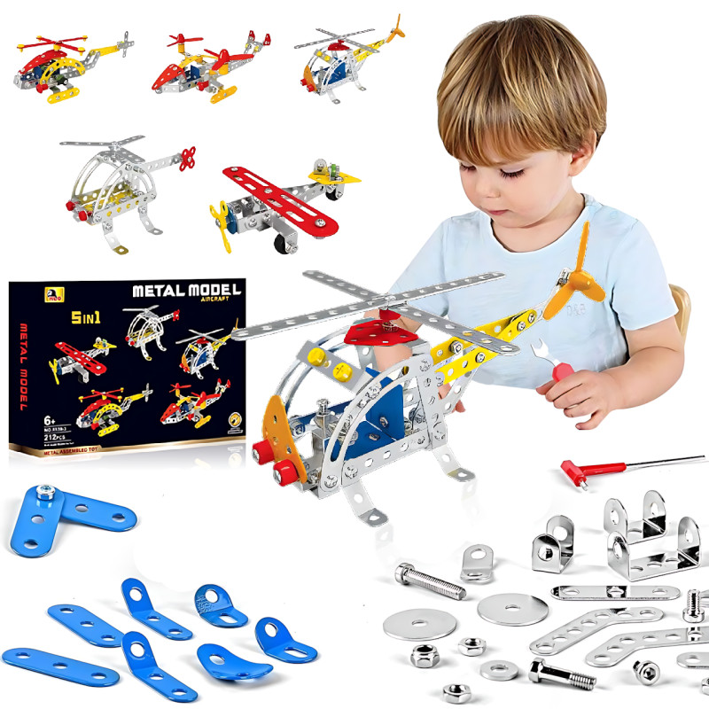 Металлический конструктор X638-3 вертолет, конструктор 5 в 1: воздушный транспорт, из 212 деталей