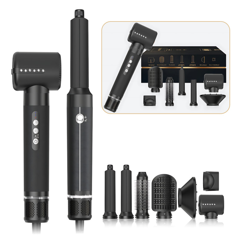 Многофункциональный фен-стайлер 7-в-1 1400 Вт, 110 000 об/мин, ионизация, холодный воздух, 3 температуры (55/75/130°C), 3 скорости Черный
