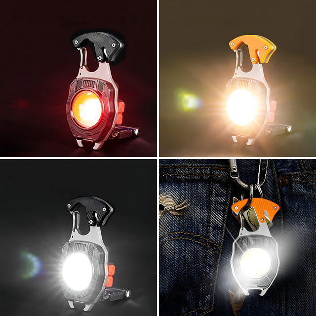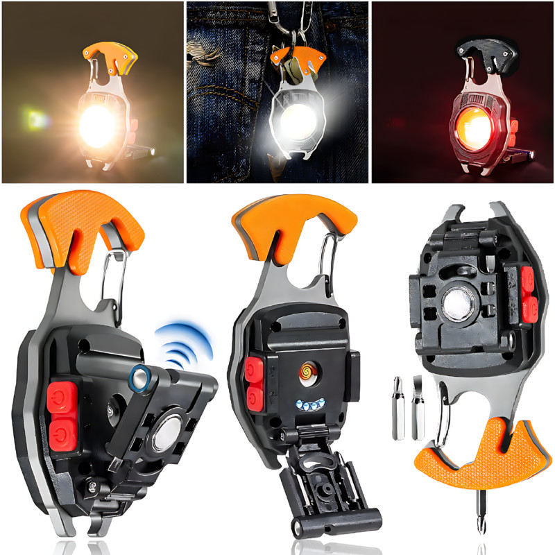 Многофункциональный мини фонарик, светодиодный фонарь-брелок 5147 для ключей с зажигалкой, стропорезом